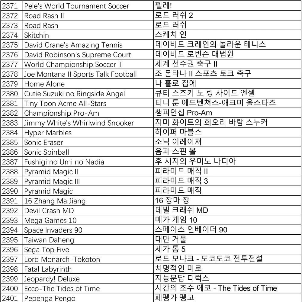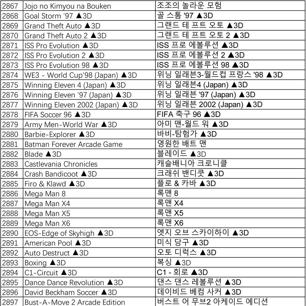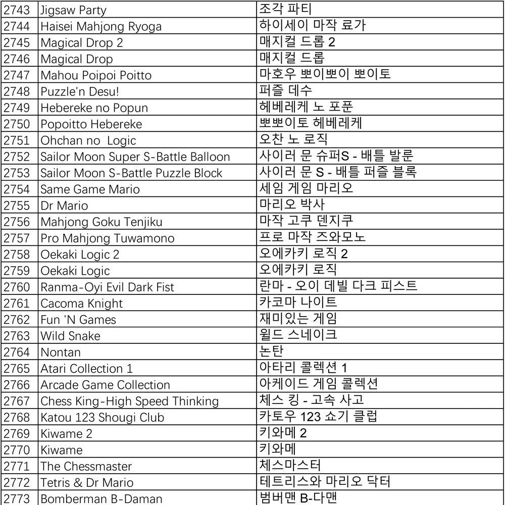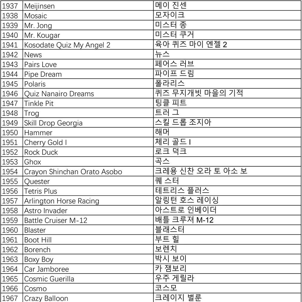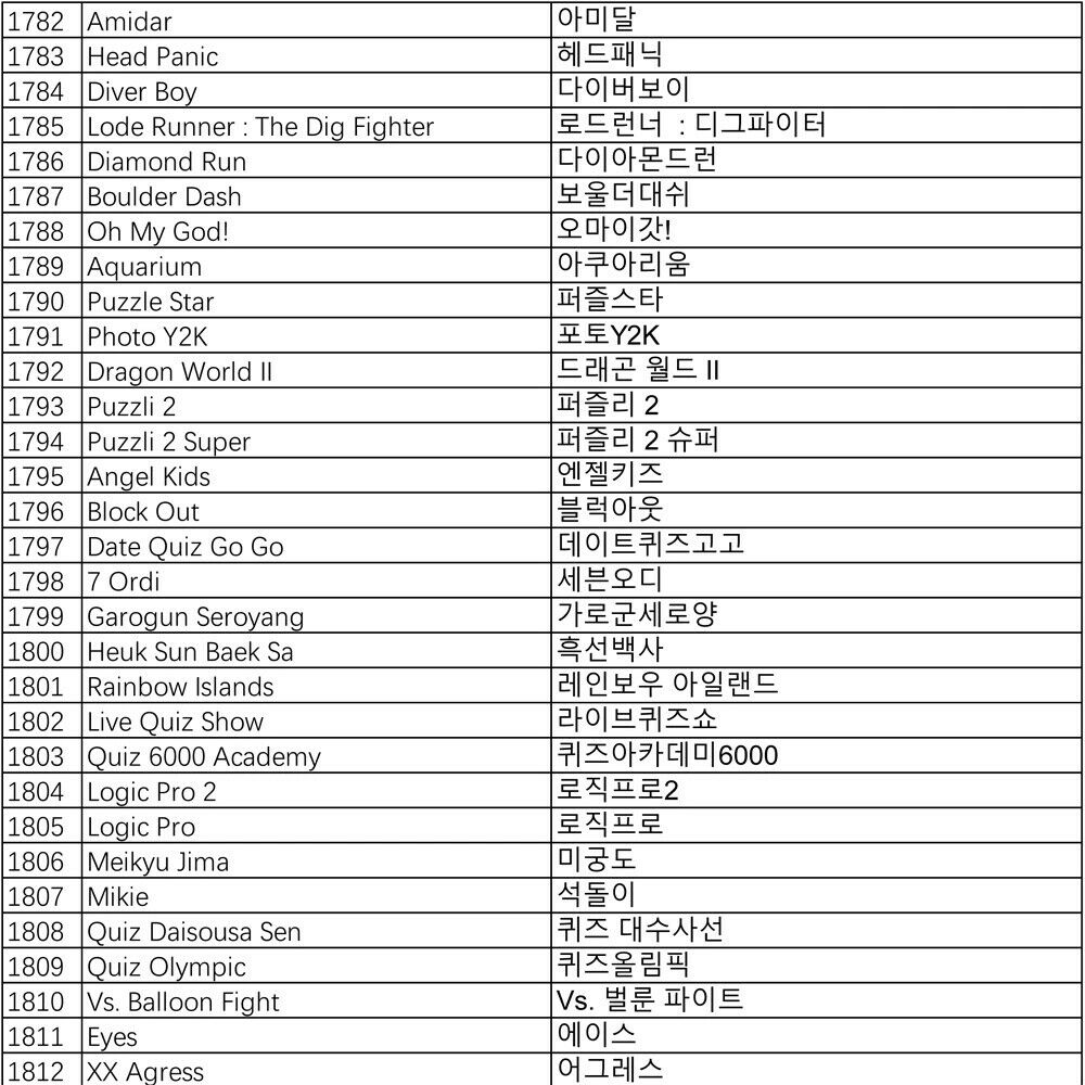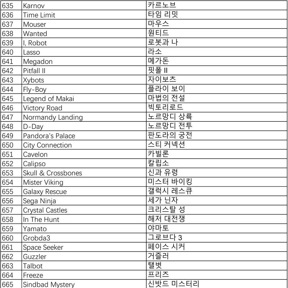 Pandora Games List